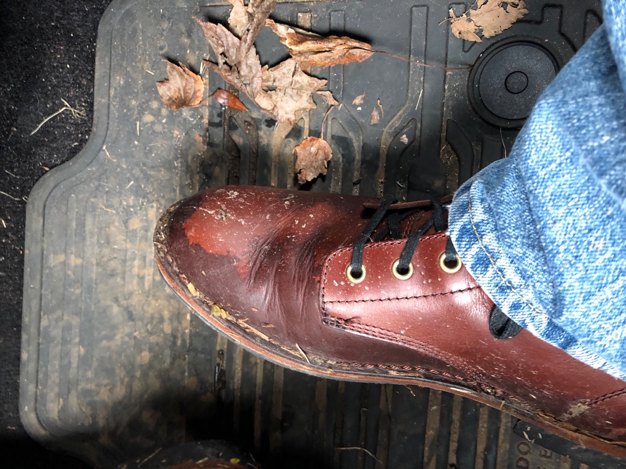 One thing I forgot to mention is that the half sole and heel on these are vibram and have some traction unlike the cork sole of the Alden or leather of a dress shoe or roper.